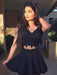 Bridelily A-Line V-Neck Sleeveless Lace Satin Two Piece Short/Mini Dresses