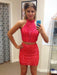 Sheath Sleeveless Halter Sequin With Beading Short/Mini Two Piece Dresses