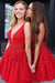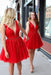 Graceful V-Neck Applique Lace Homecoming Tulle Short Prom Dress