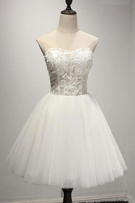Ivory Strapless Mini Tulle Prom Dresses A Line Sweetheart Appliqued Short Homecoming Dress