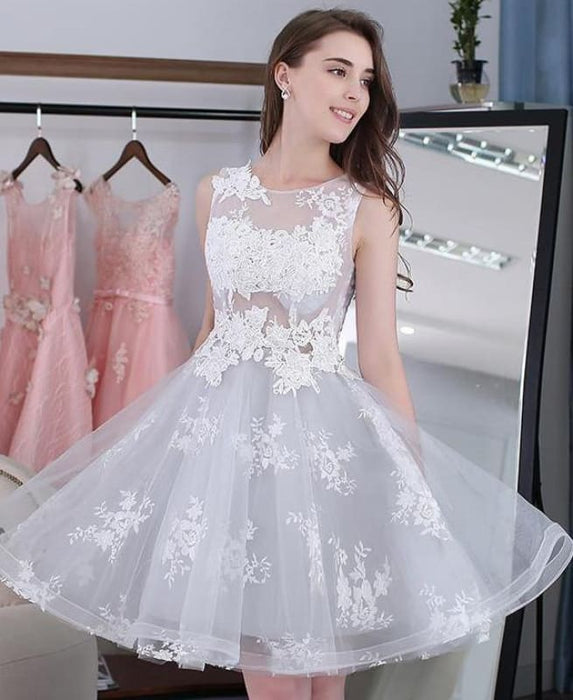 Knee-length Sleeveless Short Homecoming A-line Lace Appliques Tulle Party Dresses