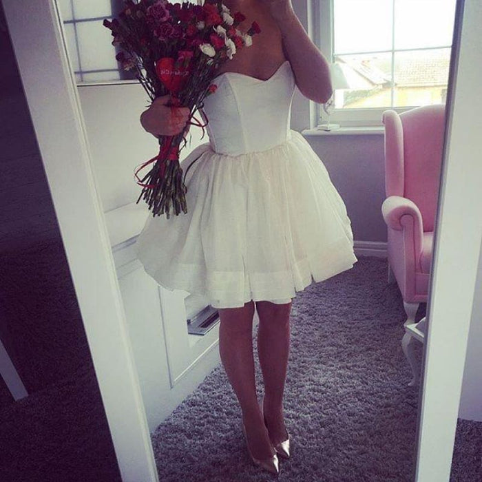 Mini Strapless Dresses Cute A-Line Sweetheart Ivory Short Homecoming/Cocktail Dress