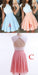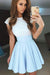 Pale Blue A-Line Cap Sleeves Short Chiffon Homecoming with Lace Top Mini Prom Dress