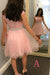 Pink Homecoming Short Tulle Prom Dresses With Bead Waist Lace Appliques Graduation Dress