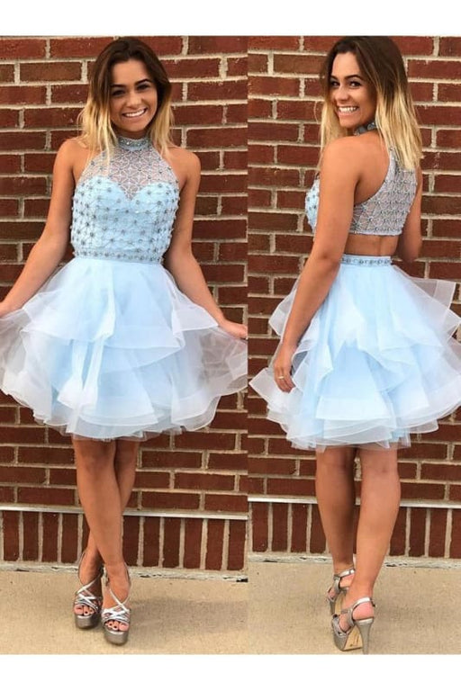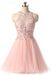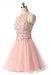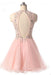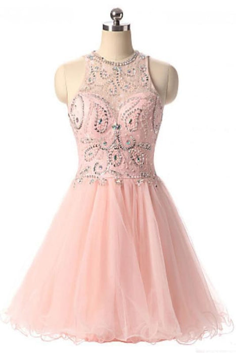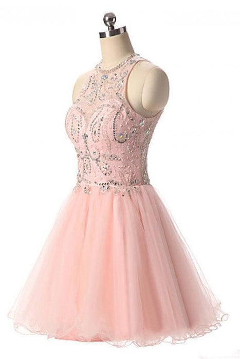 Pink Jewel Tulle Homecoming Dresses with Open Back Beading Sleeveless Short Prom Dress
