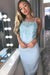Sheath Spaghetti Straps Light Blue Knee Length Party Lace Appliqued Prom Dress