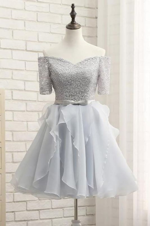 Silver Off-the-shoulder Homecoming Half Sleeve Short Prom Party Dress with Band