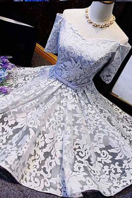 Simple Off the Shoulder Satin Short Prom with Bowknot A Line Homecoming Dress