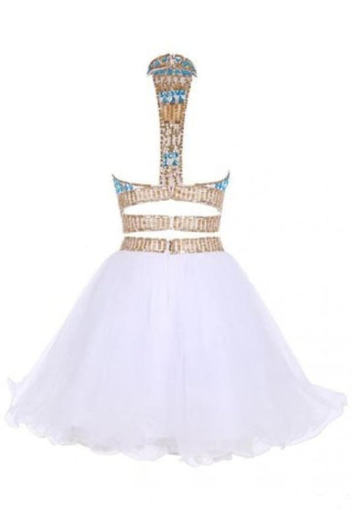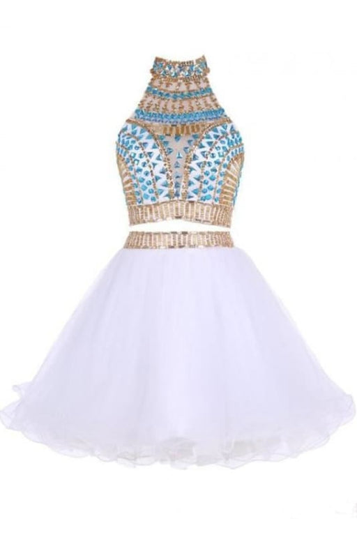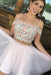 Two Piece Off the Shoulder Tulle Short Homecoming Charming Prom Dress with Beads