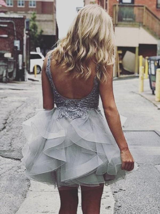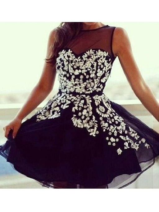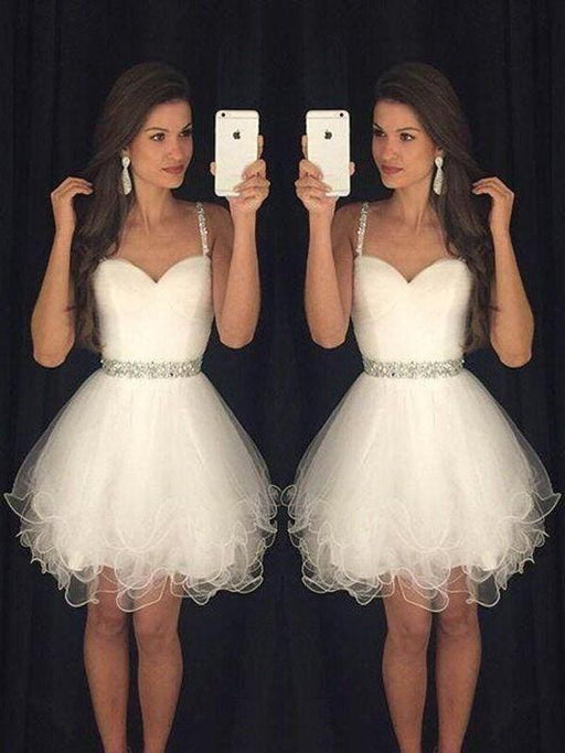 Bridelily A-Line With Applique Spaghetti Straps Organza Sleeveless Short/Mini Dresses