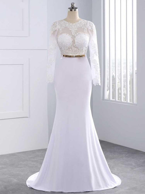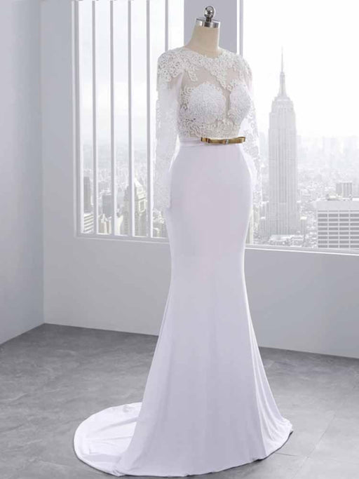 Elegant Long Sleeves Lace Mermaid Wedding Dresses with Detachable Train
