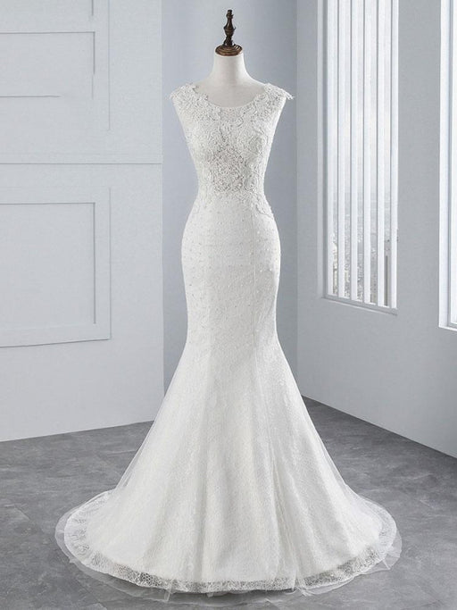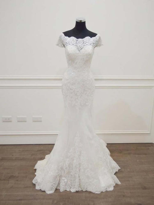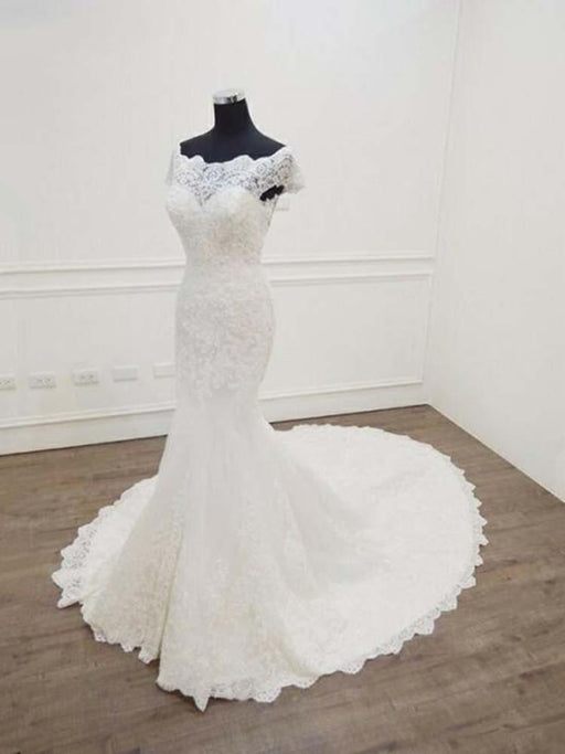 Elegant Off-the-Shoulder Lace Meimaid Wedding Dresses with Train