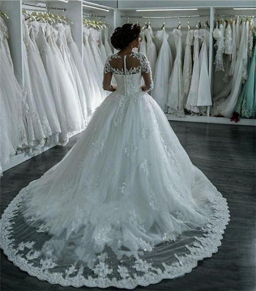 Luxury O-Neck Long Sleeves Lace- Up Ball Gown Wedding Dresses