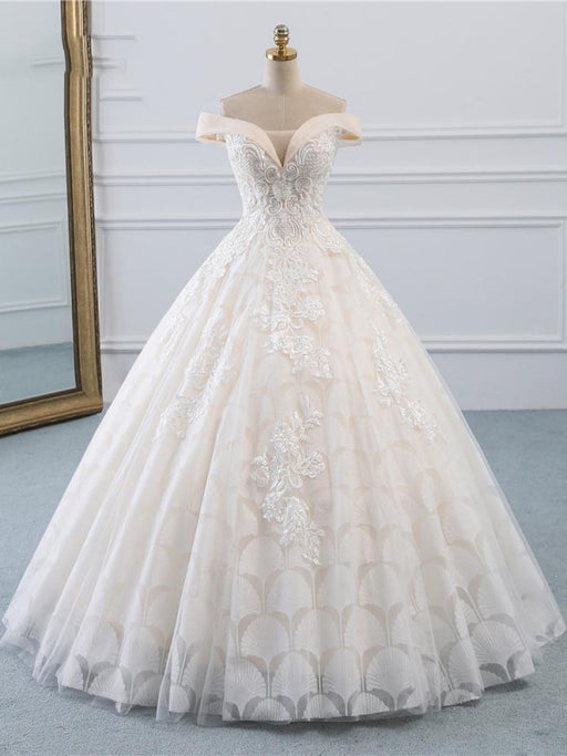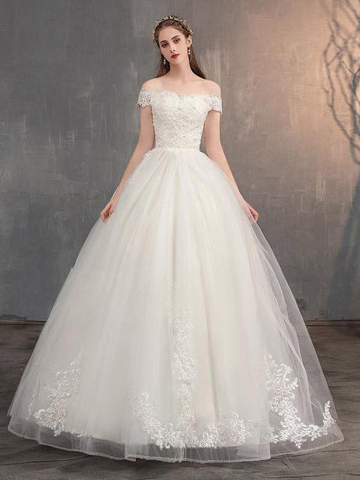 Luxury off-the-Shoulder Lace-Up Ball Gown Wedding Dresses with Train