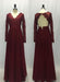 Burgundy Sleeve V-neck Backless Lace Top Chiffon Long Bridesmaid Prom Dress