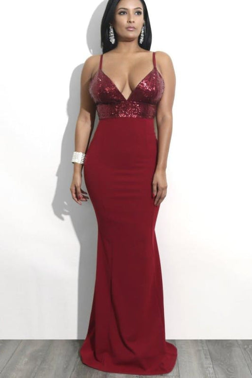 Burgundy Spaghetti Strap V Neck Mermaid Bridesmaid Long Prom Dress with Lace