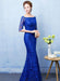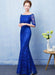 Mermaid Evening Dress Royal Blue Lace Prom Dress Off The Shoulder Half Sleeve Fishtail Maxi Party Dress Wedding Guest Dress