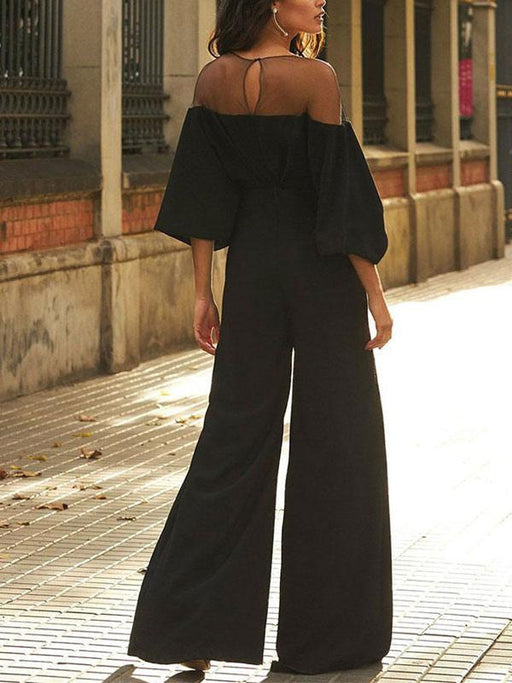 This elegant jumpsuit features long sleeves adorned with delicate lace appliqués, enhancing its sophisticated appeal. Crafted from lightweight chif...