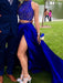 Bridelily A-Line Elastic Woven Satin High Neck Sleeveless Sweep/Brush Train With Beading Two Piece Dresses