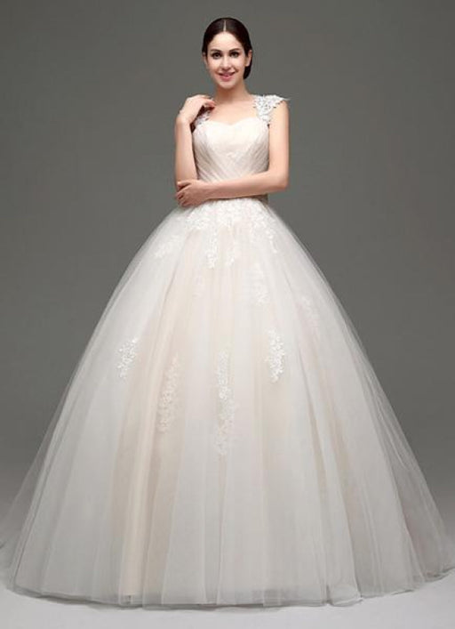 Tulle Wedding Dress Ivory Lace Applique Flower Detail Half Sleeve Princess Bridal Gown