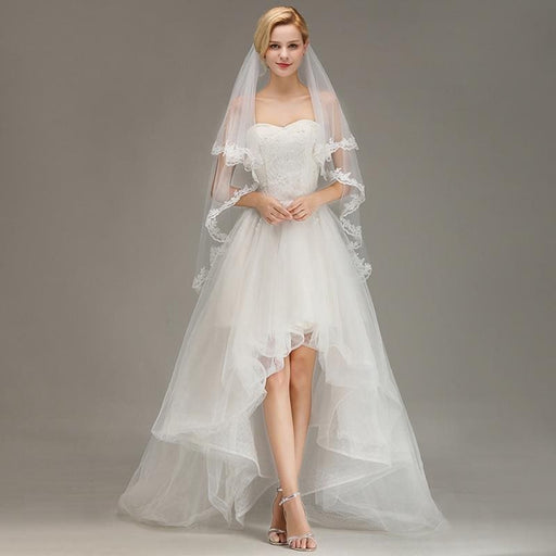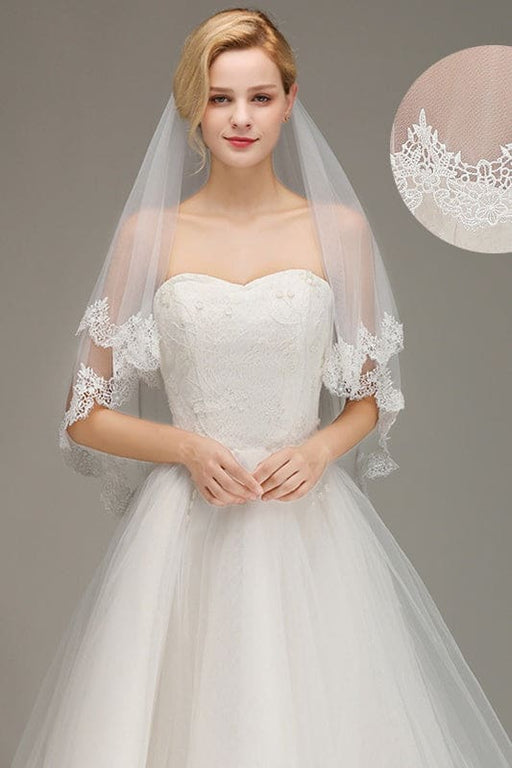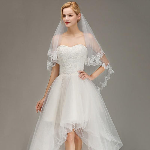 Lace Edge Short with Comb Two Layers Wedding Veils | Bridelily