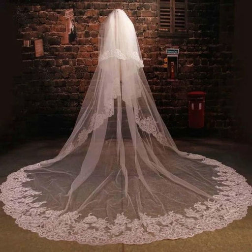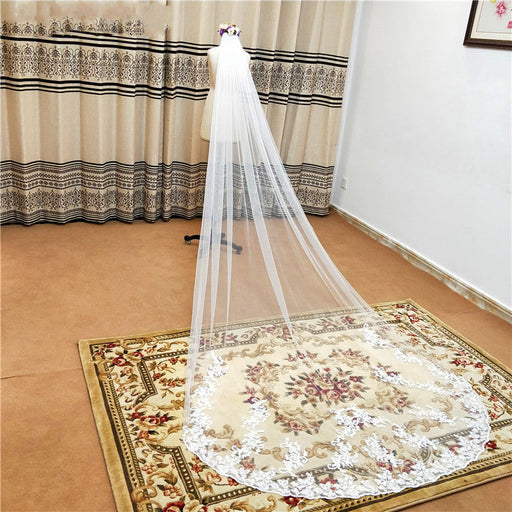 3M Lace Edge Chapel Wedding Veils Long with Comb| Bridelily