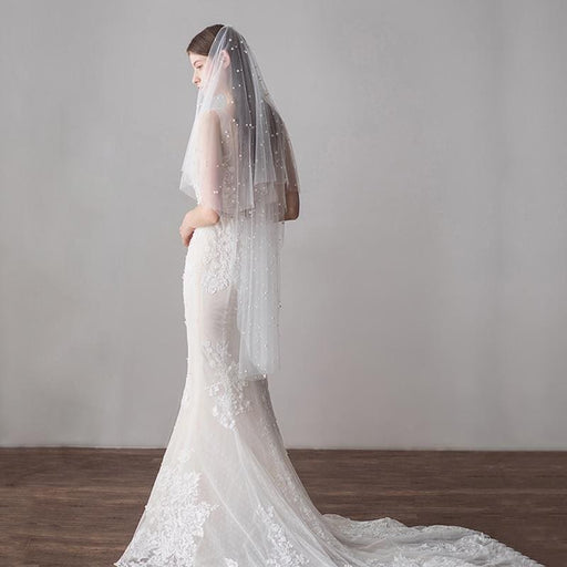 Fashion pearl Tulle Beads With Comb Wedding Veils | Bridelily