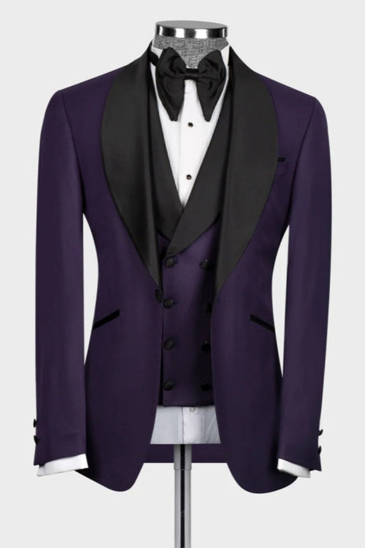 Chic Red Shawl Lapel Three Pieces Wedding Suits Wedding Groom Prom Tuxedo Dinner Party