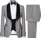 Gray Slim Fit Three Pieces Wedding Suits with Black Shawl Lapel One Button Tuxedos Blazer Vest Pants