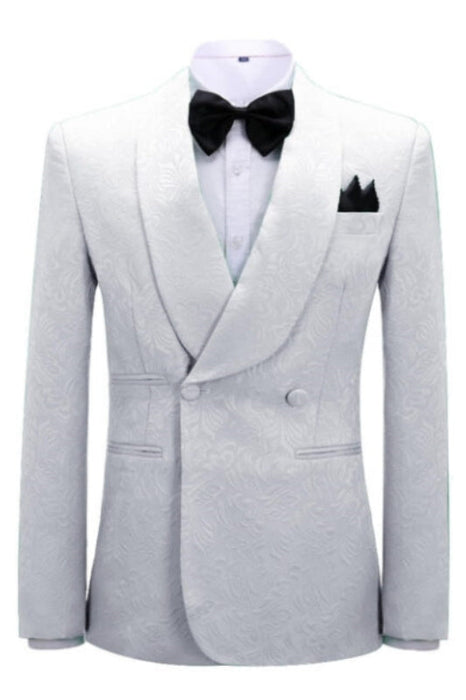 Simple White Shawl Lapel Double Breasted Jacquard Wedding Suits Two Pieces Tuxedos Dinner Party Prom Suit