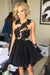 A-line Homecoming Short Prom Chiffon Black Backless Cocktail Dress with Appliques