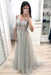 A Line V Neck Tulle Prom Gown Half Sleeves Long Party Dress with Beading