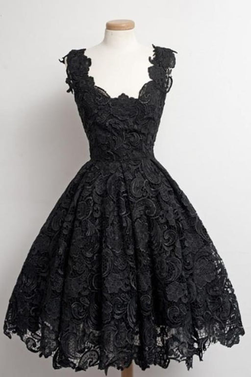 Black Spaghetti Strap Tulle Homecoming Dress with Lace