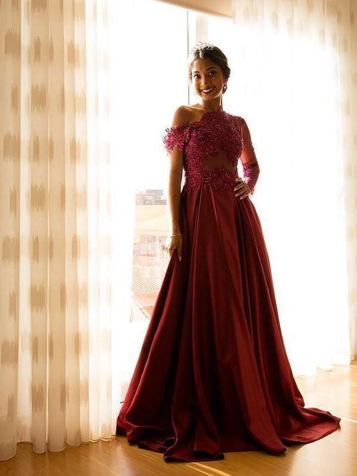 Sleeveless Sweetheart Floor-Length A-line With Applique Satin Dresses