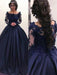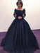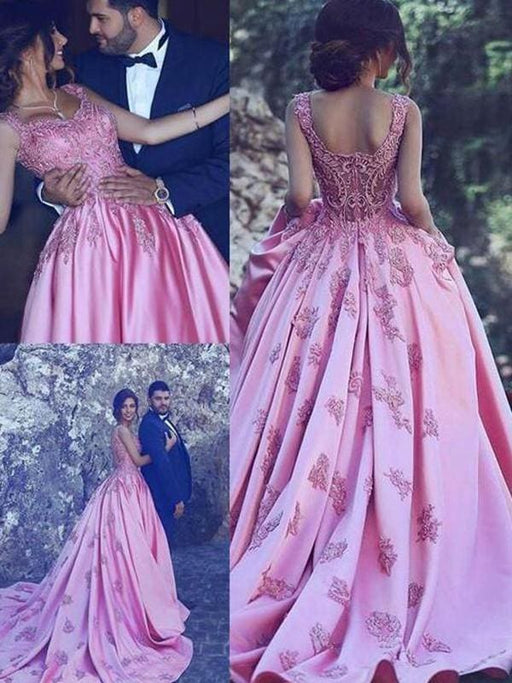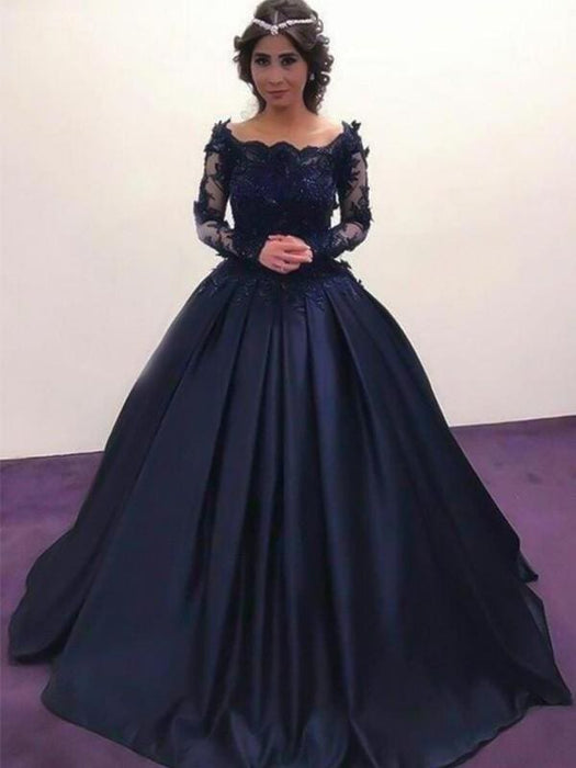Bridelily Ball Gown Bateau Long Sleeves Sweep/Brush Train With Applique Satin Dresses