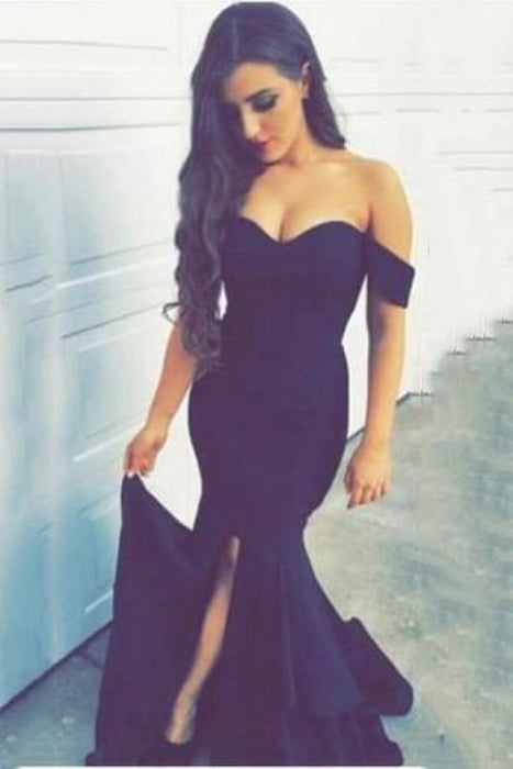 Bridelily Off the Shoulder Mermaid Evening Dress Sexy Long Split Party Dresses