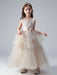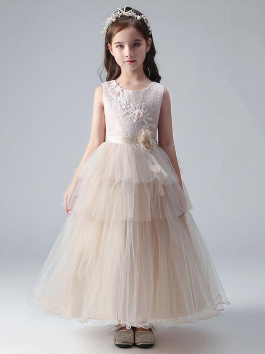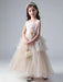 Champagne Princess Flower Girl Dresses Jewel Neck Tulle Sleeveless Ankle-Length Formal Kids Pageant Dresses