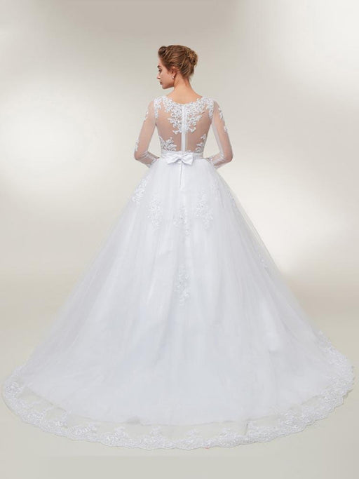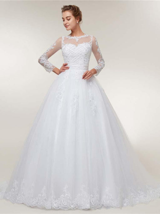 Elegant Long Sleeves Lace Detachable Train Ball Gown Wedding Dresses