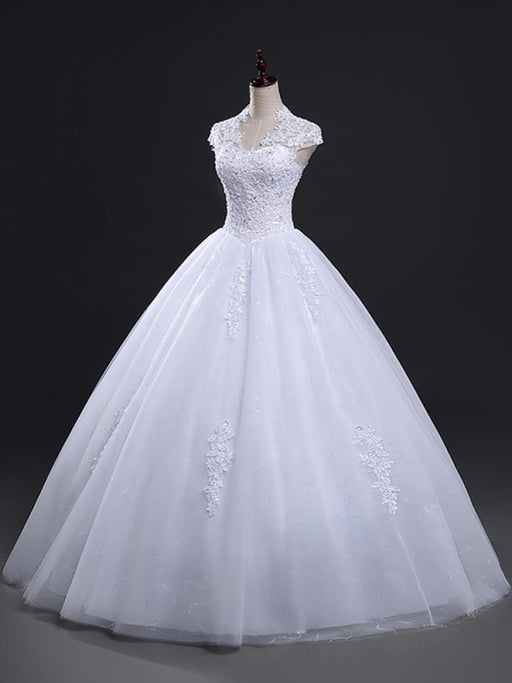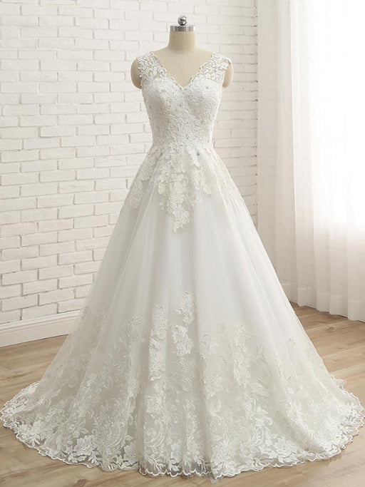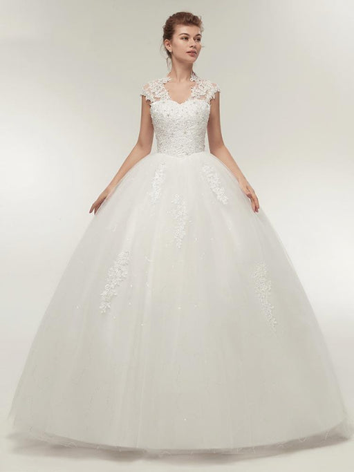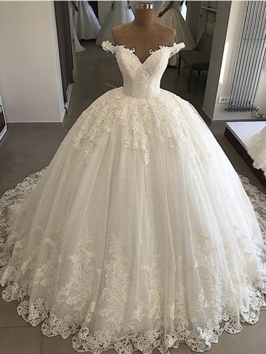 V-Neck Lace Sequins Ball Gown Wedding Dresses