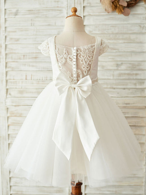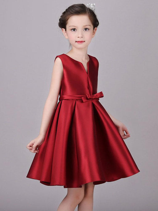 Cute Flower Girl Dresses Short Sleeve Satin Princess Dress Pleated Kids Party Dresses
