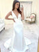 Elegant Mermaid V Neck White Satin Long Prom, Mermaid White Formal, White Evening