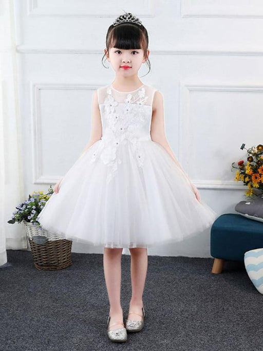 Silhouette Princess Neckline Jewel Hemline/Train Knee-Length Back Details Zipper Fabric Tulle, Lace Embellishment Bows Sleeve Length Sleeveless Fully Lined Yes Season Spring, Summer, Fall, Winter Weight 0.35kg