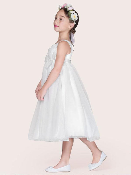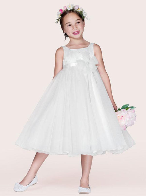 Half Sleeves A-Line Lace Kids Party Dresses Ivory Jewel Tulle Flower Girl Dresses