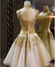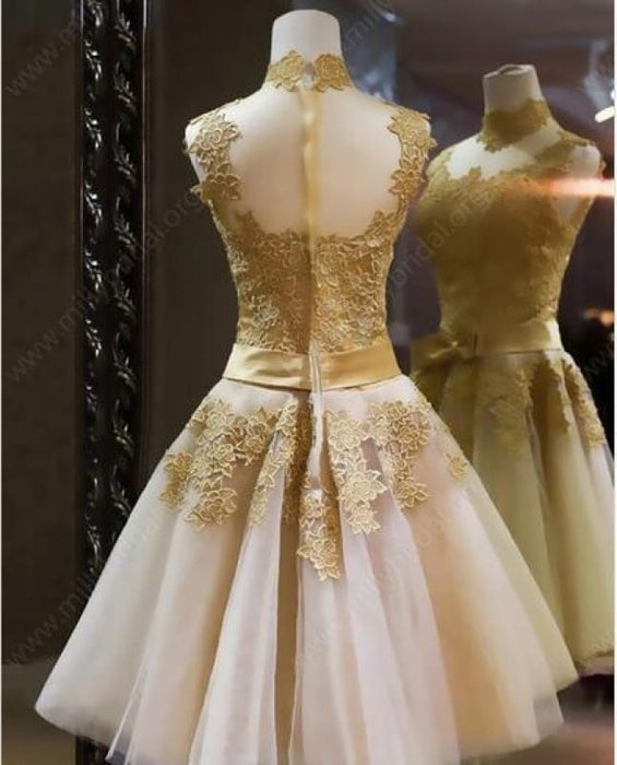 High Neck Tulle Homecoming with Bowknot Appliques Sleeveless Knee-length Prom Dress