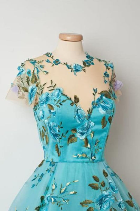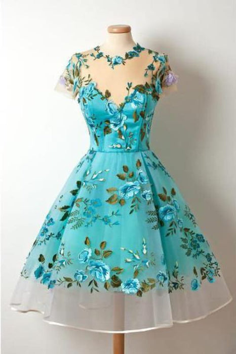 New Sleeves Unique Homecoming Dress Appliqued Blue Short Prom Dresses