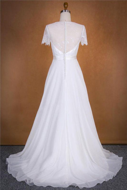 | product name: | Bridelily Open Back Long Sleeve Lace Chiffon Wedding Dress |
