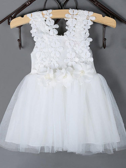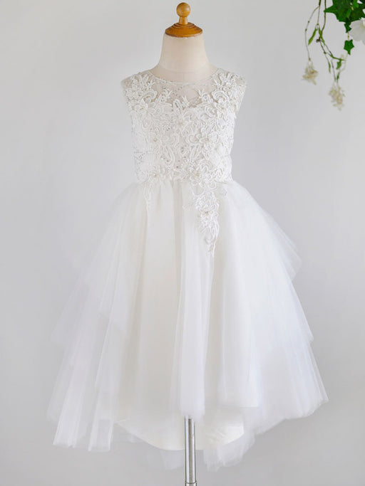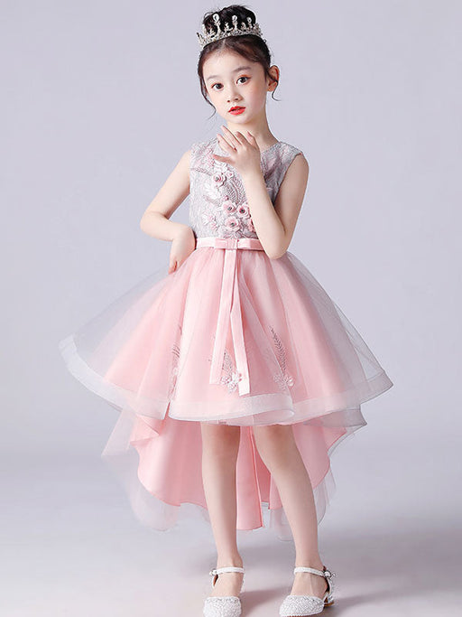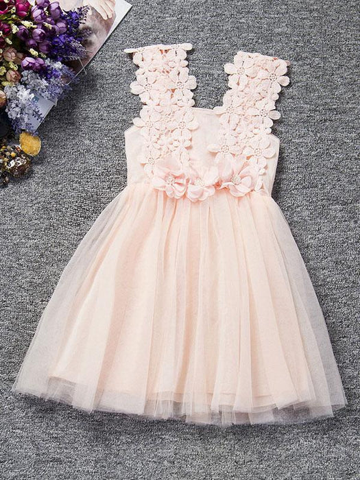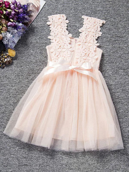 Pearl Pink Lace Applique Tutu Flower Girl Dresses Short Beading Kids Dinner Party Dresses
