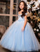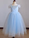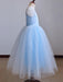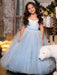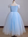 Princess Flower Girl Dresses Square Neck Sleeveless Sky Blue Lace Kids Party Dresses