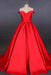 Puffy Off the Shoulder Red Satin Prom A Line Party Dress with Belt