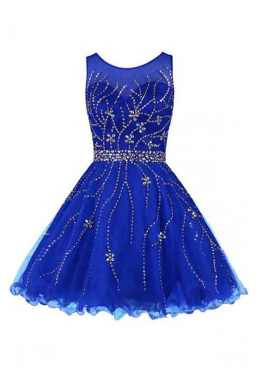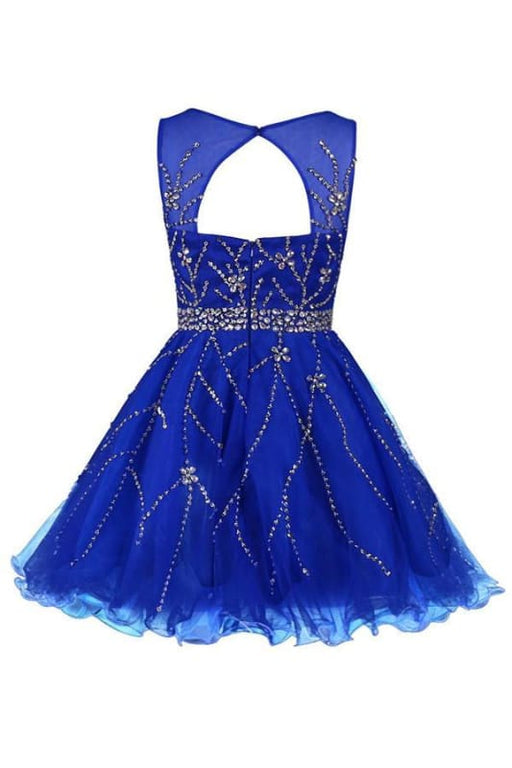 Royal Blue Organza Scoop Short Homecoming Dresses